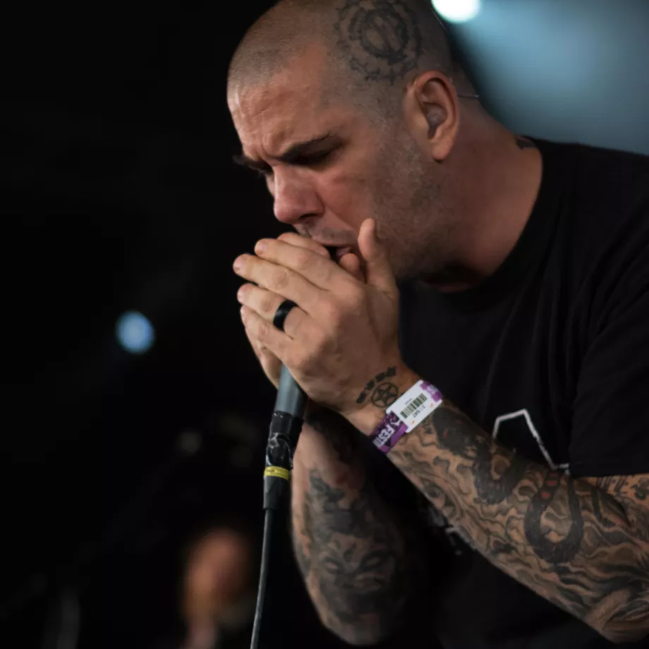 – Gotta remember the fucking lyrics. I’m in so many bands, it’s fucking ridiculous. Phil Anselmo stirrer besk på publikum. Han står i midten af Scour – hans nyeste projekt, han har startet sammen med John Jarvis fra Pig Destroyer, Derek Engemann fra Cattle Decapitation,